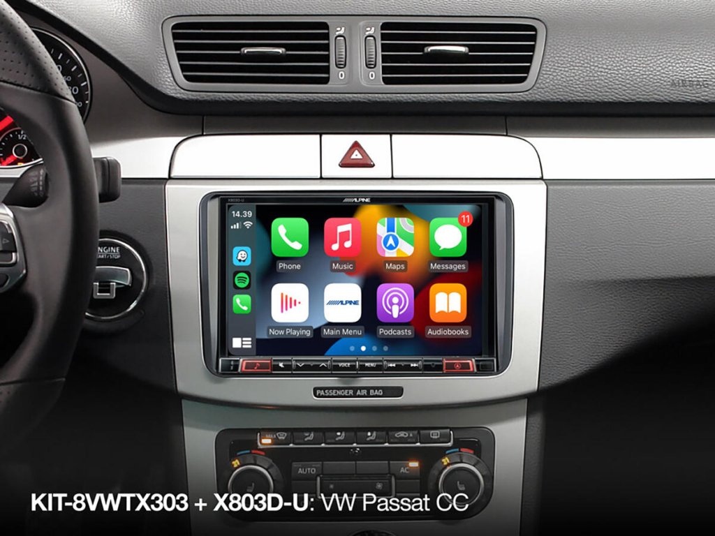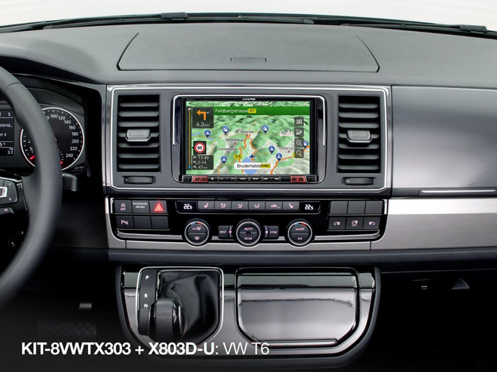 - KIT-8VWTX303 obsahuje všechny díly pro mechanickou montáž 8palcové hlavní jednotky Alpine X803D-U / X803DC-U a také rozhraní, které umožňuje zachovat ovládací obrazovky klimatizace a topení a optický displej parkovacího senzoru.