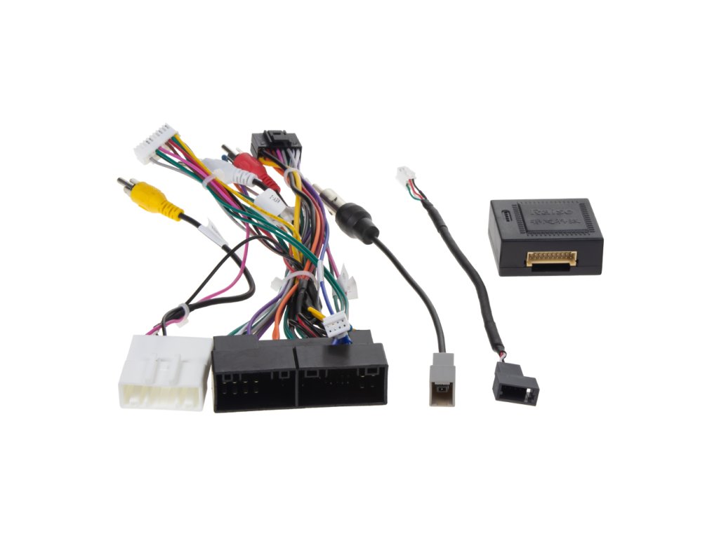 Součástí kabeláže je redukce na originál USB, kamer. vstup, RCA AUX a anténní redukce DIN/hyundai/Kia.