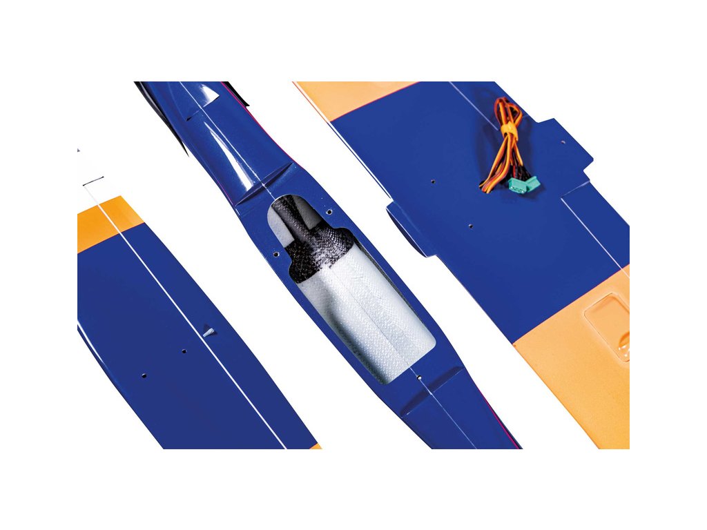 Baterie (není obsahem balení) je uložena pod křídlem, kde je největší průřez trupu, aby bylo možné použít co největší baterii.