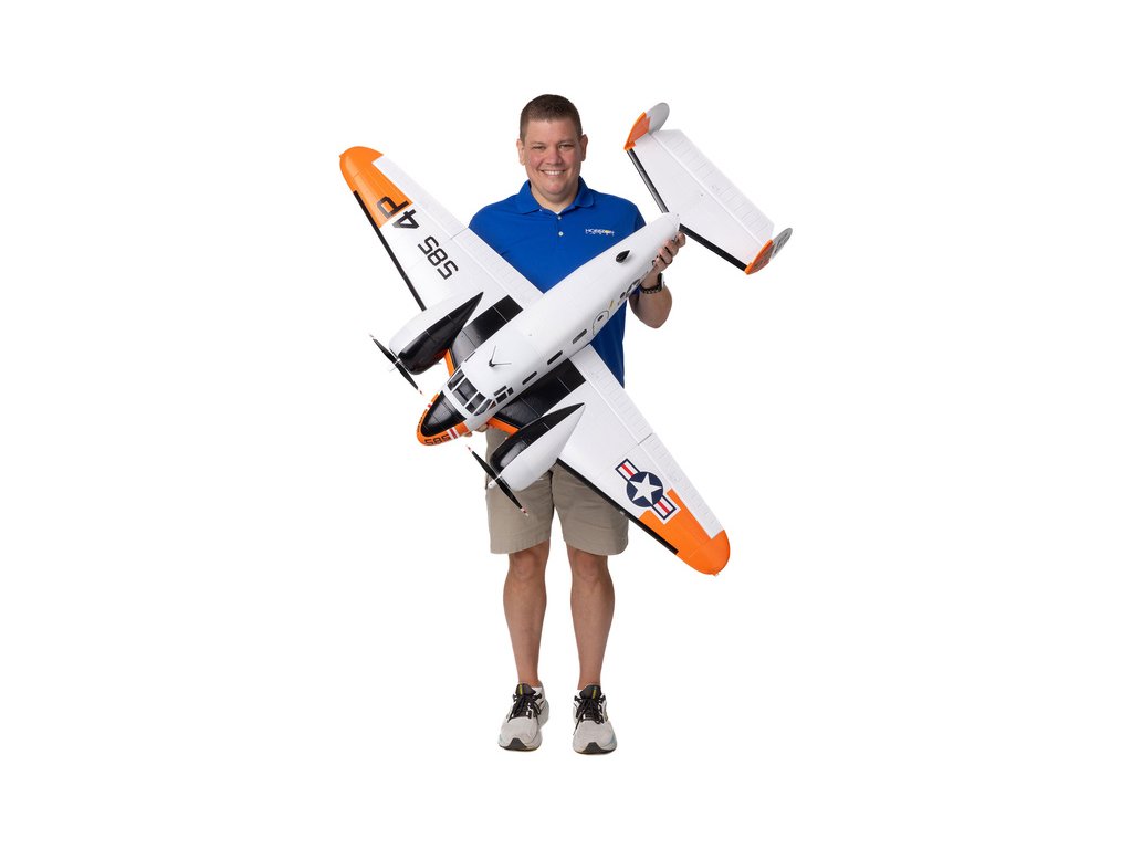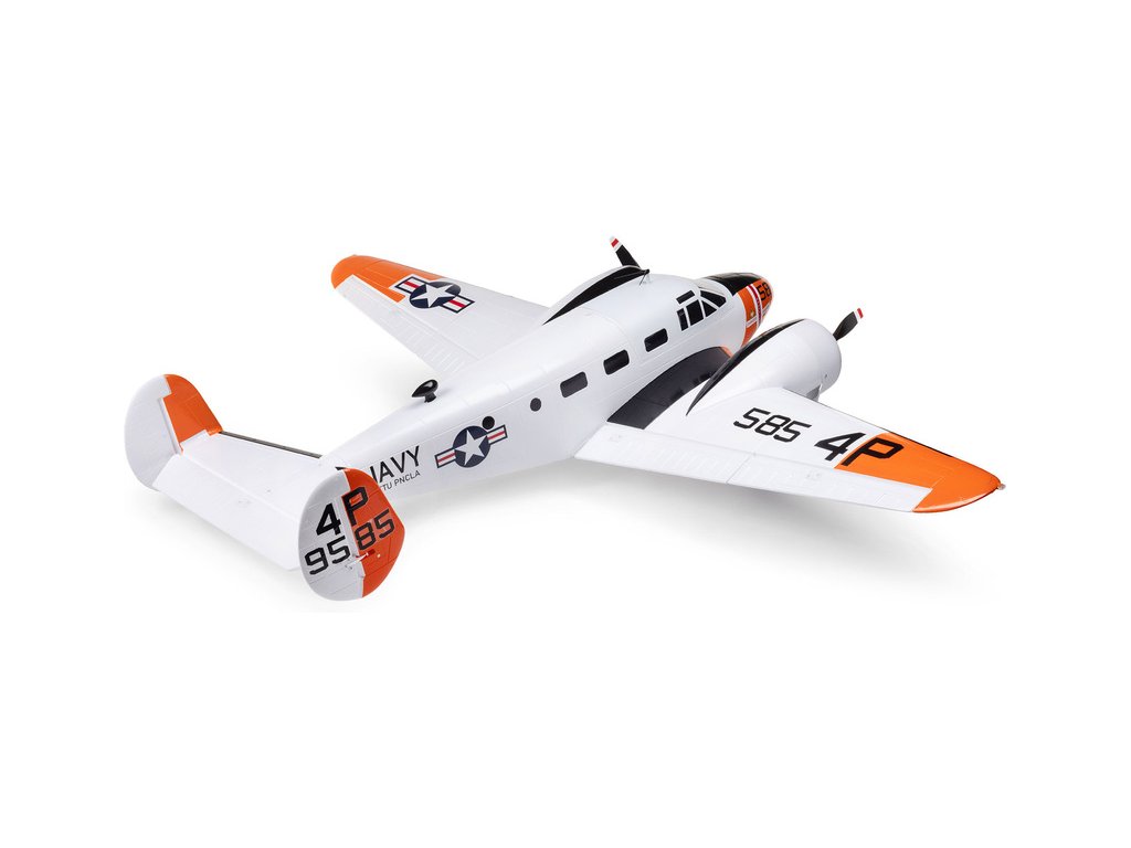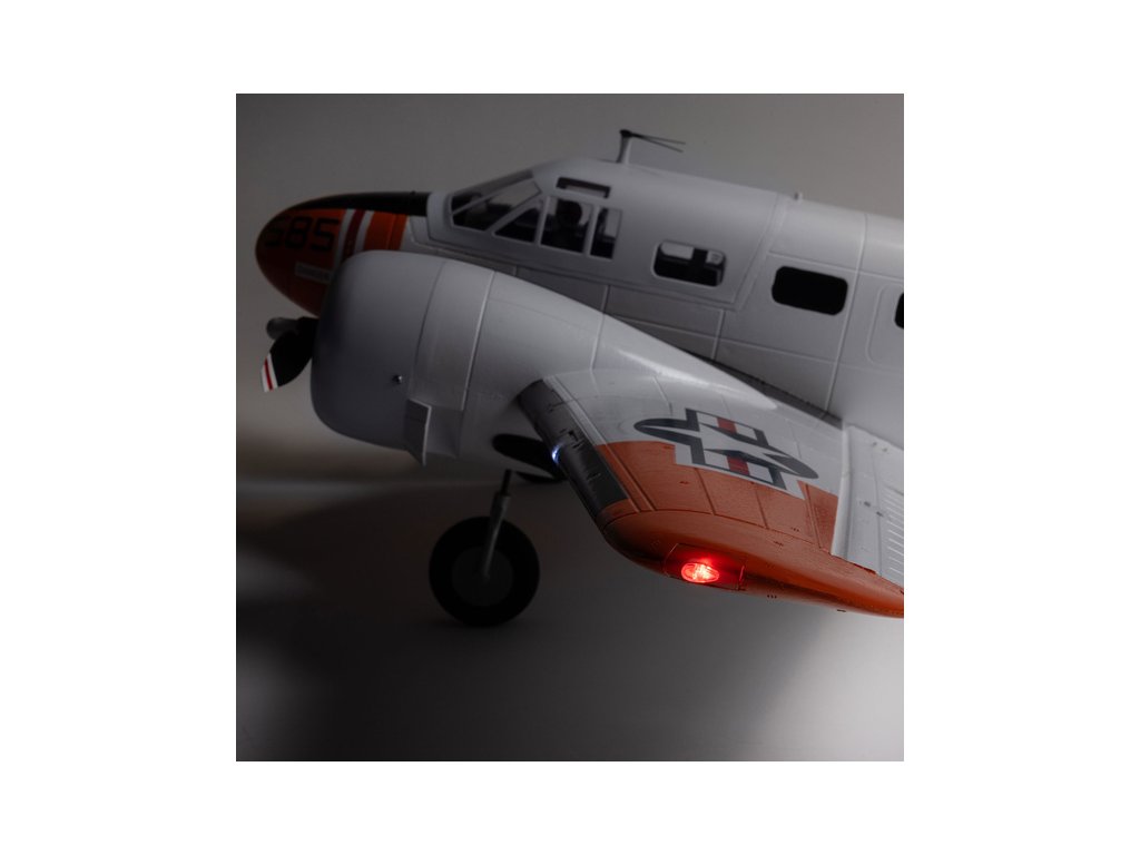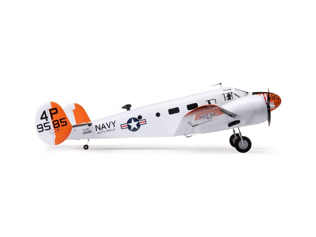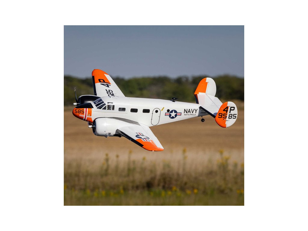 Detailně provedená polomaketa známého amerického letounu Beechcraft D18, ve zbarvení amerického námořnictva (RC-45J), jako plně funkční RC model E-flite o rozpětí 1.5 m. Jedná se o jeden z uživatelsky nejpřívětivějších a nejsnadněji létajících RC modelů této ikony letectví, který je nabitý funkcemi. Dva protiběžné motory v kombinaci s regulátorem Spektrum s možností napájení 3S - 4S LiPo 3200–5000 mAh poskytují nadmíru výkonu pro běžné i sportovní létání. K výborné ovladatelnosti přispívá také dvojitá směrovka a diferenciace tahu motorů. Plná výbava je podpořena funkčními vztlakovými klapkami pro start a přistání a elektrickým zatahovacím podvozkem s odolnými kovovými komponenty. Pro dobrou orientaci a úžasný vzhled je instalováno LED osvětlení.
