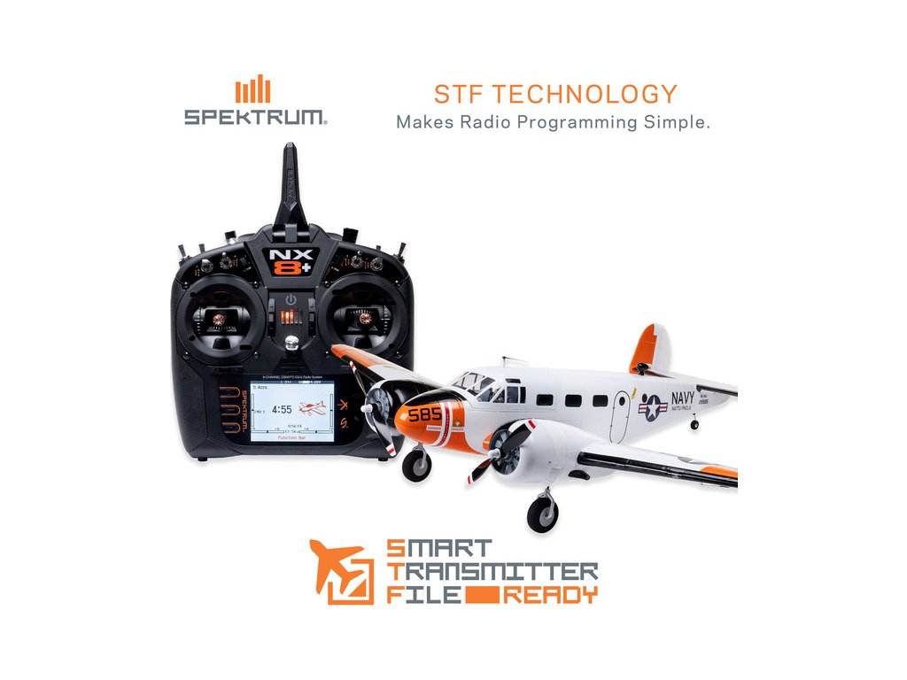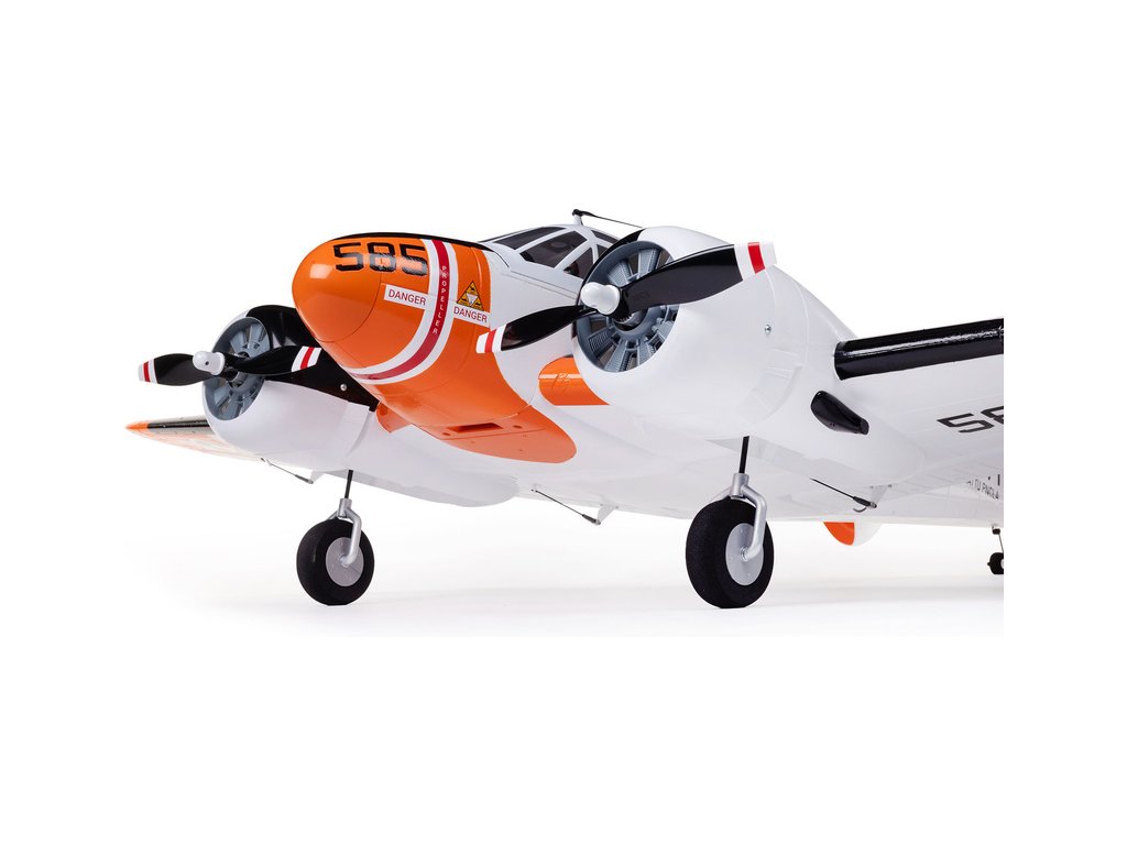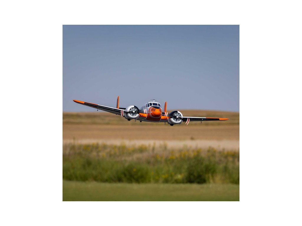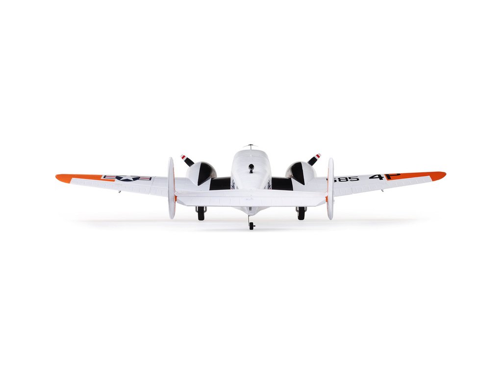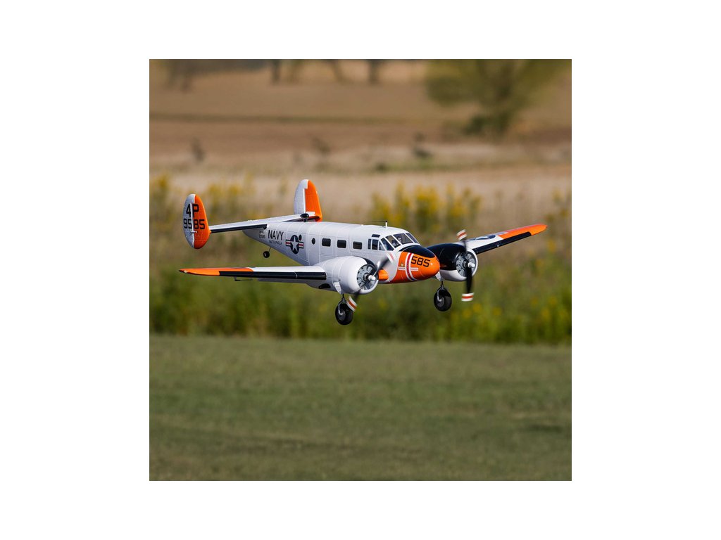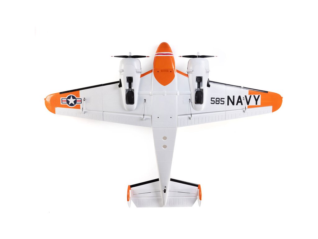 Detailně provedená polomaketa známého amerického letounu Beechcraft D18, ve zbarvení amerického námořnictva (RC-45J), jako plně funkční RC model E-flite o rozpětí 1.5 m. Jedná se o jeden z uživatelsky nejpřívětivějších a nejsnadněji létajících RC modelů této ikony letectví, který je nabitý funkcemi. Dva protiběžné motory v kombinaci s regulátorem Spektrum s možností napájení 3S - 4S LiPo 3200–5000 mAh poskytují nadmíru výkonu pro běžné i sportovní létání. K výborné ovladatelnosti přispívá také dvojitá směrovka a diferenciace tahu motorů. Plná výbava je podpořena funkčními vztlakovými klapkami pro start a přistání a elektrickým zatahovacím podvozkem s odolnými kovovými komponenty. Pro dobrou orientaci a úžasný vzhled je instalováno LED osvětlení.