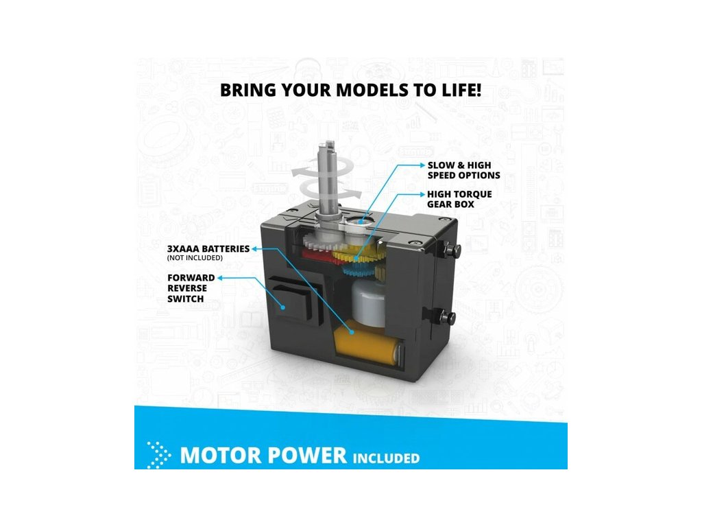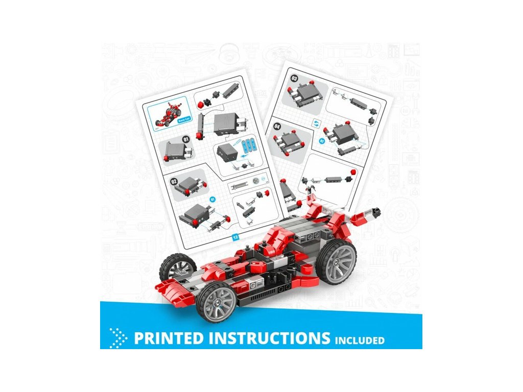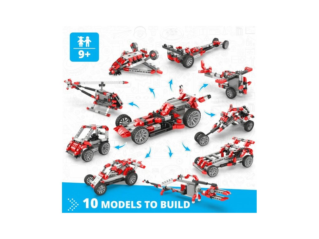 Stavebnice pro děti od 9 let, Engino Inventor Mechanics formule, sestavit lze 10 různých modelů aut, letadel, vrtulník, apod. Kreativní stavebnice s pohonnou jednotkou s elektromotrem s převodovkou na baterie a sadou ozubených kol, s možností využít stávající díly k dalším stavebnicím Engino. Obrázkový přehledný barevný návod.