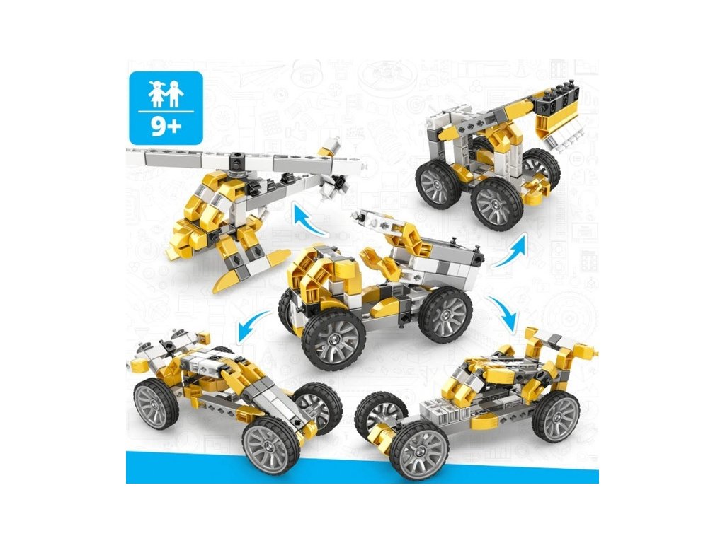 Stavebnice pro děti od 9 let, Engino Inventor Mechanics sklápěč, sestavit lze 5 různých modelů, jako stavební stroje, vrtulník, závodní auto a další. Jednoduchá kreativní stavebnice pro děti, s možností využít stávající díly k dalším stavebnicím Engino. Obrázkový přehledný barevný návod.