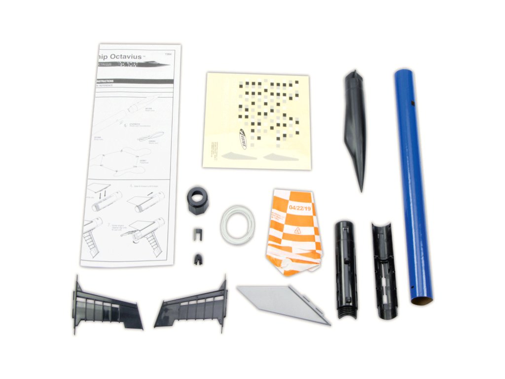 Model rakety Estes Starship Octavius Kit je na raketové motory řady A - C. Raketa se štíhlým tělem, propracovanými stabilizátory a vypouklou špicí imitující kokpit. Vhodná pro začátečníky, snadné sestavení. Létá do výšky až 335 m m a k zemi se snese díky padáku o průměru 305 mm.