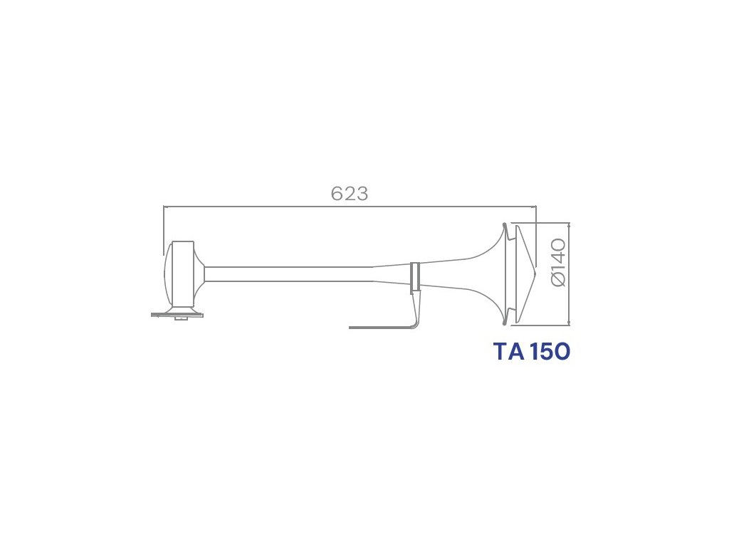 Pneumatická fanfára TA150 je vyvinuta a vyráběna firmou FIAMM. Trubka je z nerezové oceli a je vhodná pro instalaci na střeše vozidla. Ideálně v kombinaci s fanfárou TA180 generuje 2 silné tóny ideální pro kamiony. Pracuje s palubním systémem stlačeného vzduchu. Součástí balení je upevňovací materiál. Homologace CEE70/388, REG.28 ECE.