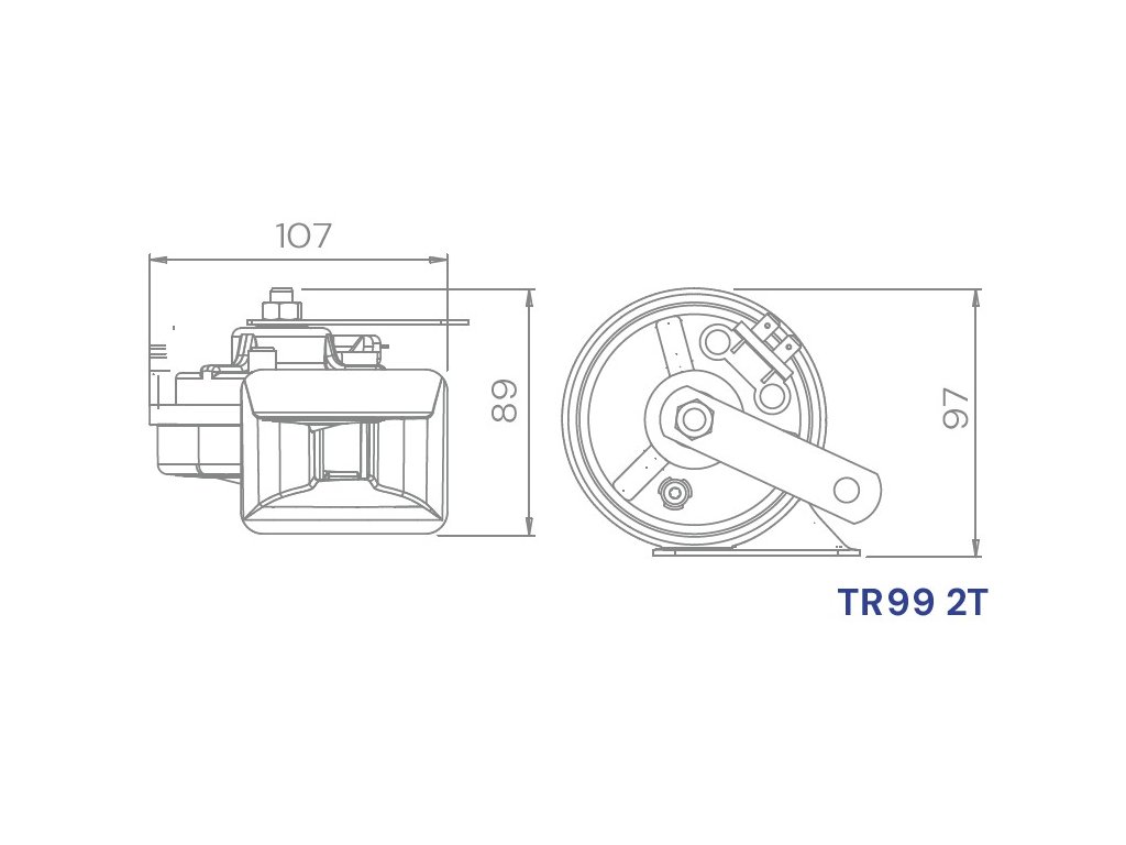 Šnekový klakson TR99 byl navržen a vyvinut společností FIAMM SpA. Je vhodný především pro montáž na nákladní automobily a průmyslová vozidla. Sada Aftermarket, dodávaná v FIAMM značkové krabičce, je doplněna upevňovacím materiálem a spínacím relé. TR99 má standardní elektrické připojení pomocí dvou kontaktů 6,3 mm a je dodáván s jedním tónem: nízký.