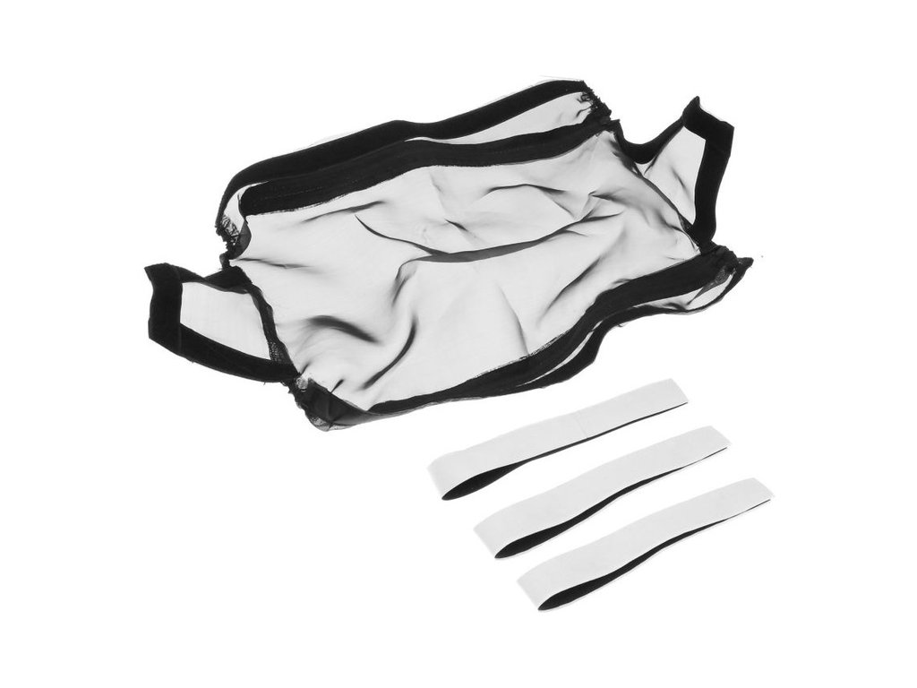 Nasaďte H-Speed protiprachový kryt seshora na podvozek a přehněte lemy na bok nebo pod šasí. Srovnejte a upravte polohu krytu a aplikujte přiloženou oboustrannou pásku suchého zipu přilepením na šasí. Pomocí zdrhovadla na obou stranách můžete protiprachový kryt odejmout.