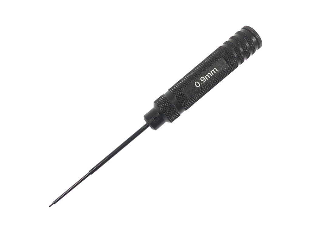 Kvalitní imbus šroubovák H-Speed o velikosti 0.90 mm má hliníkovou rukojeť s protiskluzovým křížovým vroubkováním o délce 92 mm a průměru 18 mm s plastovou otočnou zadní opěrkou a dřík o délce 84 mm. Uchycení dříku v rukojeti stavěcím šroubem.