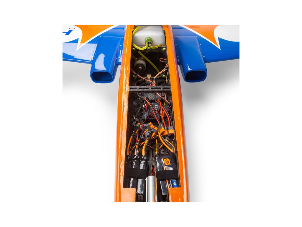 Dvoudílné křídlo usnadňuje přepravu a montáž tohoto velkého modelu s minimálními problémy, takže můžete být po příjezdu na letiště, rychle ve vzduchu. Kryty na trupu jsou dost velké pro snadný přístup k životně důležitým součástem, jako je elektronika a baterie.