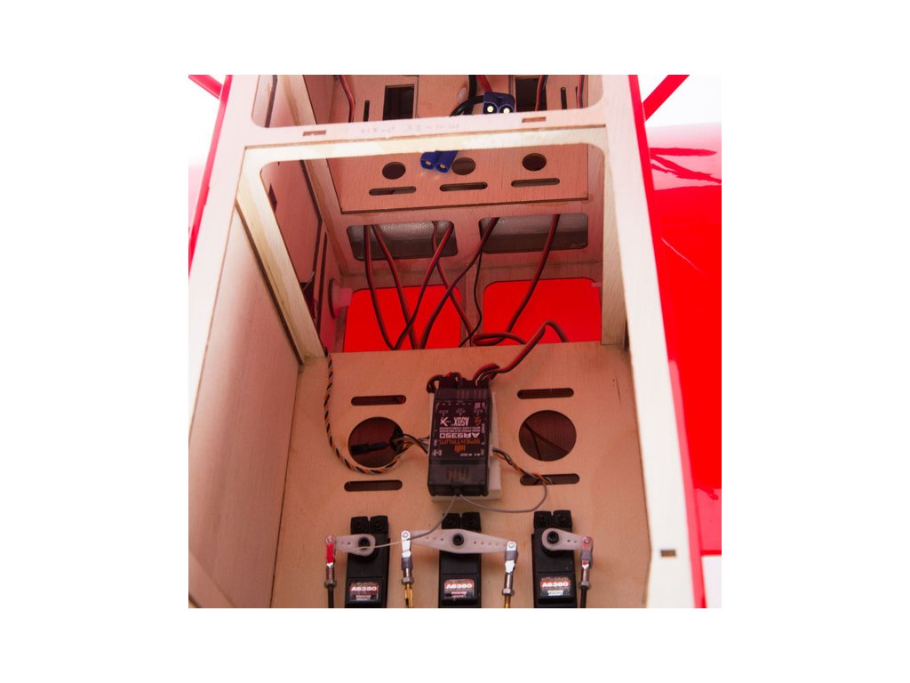 V trupu modelu je dostatek místa k instalaci serv, přijímače a baterií, pohodlně se lze dostat ke všem komponentům. Díky odnímacímu krytu na horní straně trupu, který na přední straně jistí kolíky a v zadní části drží dva šrouby, je k dispozici velký a dobře přístupný prostor.