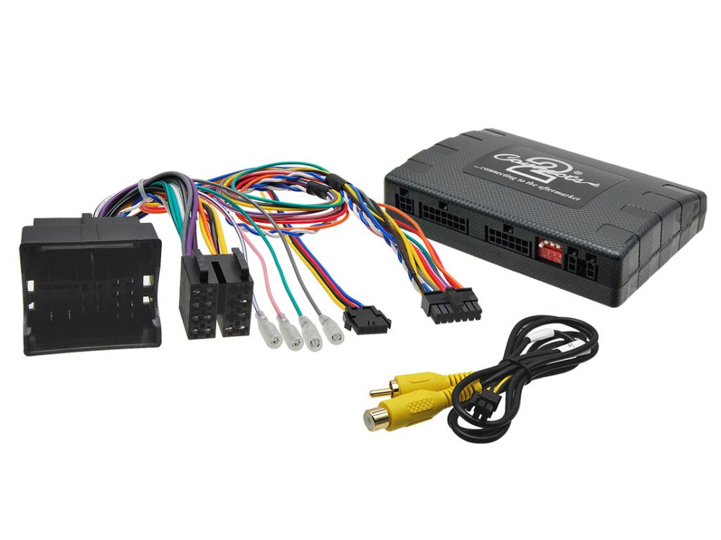 Informační adaptér pro zobrazení informací o vozidle na monitoru dodatečně instalované AV jednotky, ovládání na volantu a připojení parkovací kamery.