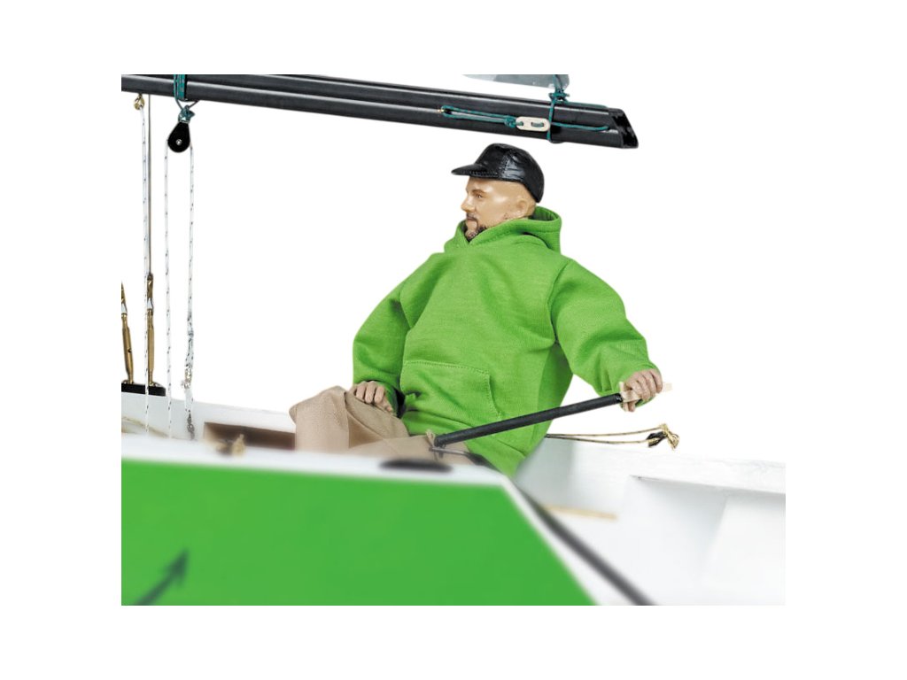 Krick maketa - Volitelné příslušenství pro plachetnici Drago nebo jiné modely. Figurka kapitána je k dispozici jako stavebnice. Díky pohyblivým pažím a nohám působí dojem, jako by ovládal kormidlo a řídil loď.Stavebnice obsahuje laserem řezané díly pro sestavení těla, 3D tištěnou hlavu, ruce a boty, stejně jako střihy pro látkové oblečení, které lze snadno slepit. Figurka je nenabarvená.
