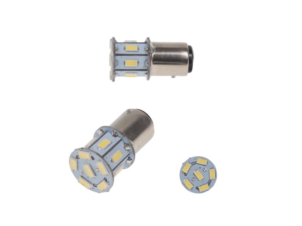 Náhradní LED žárovka s paticí BAZ15D bílá, 13 3-čipových SMD LED diod.