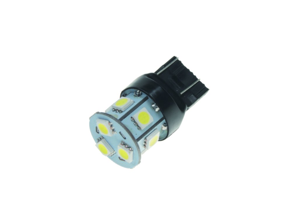 Náhradní LED žárovka s paticí T20 (7443 - W3x16q ), bílá, dvouvlákno, 9 3-čipových SMD LED diod. Tato žárovka se používá především v automobilech dovezených z USA automobilky Dodge, Ford, Chrysler.