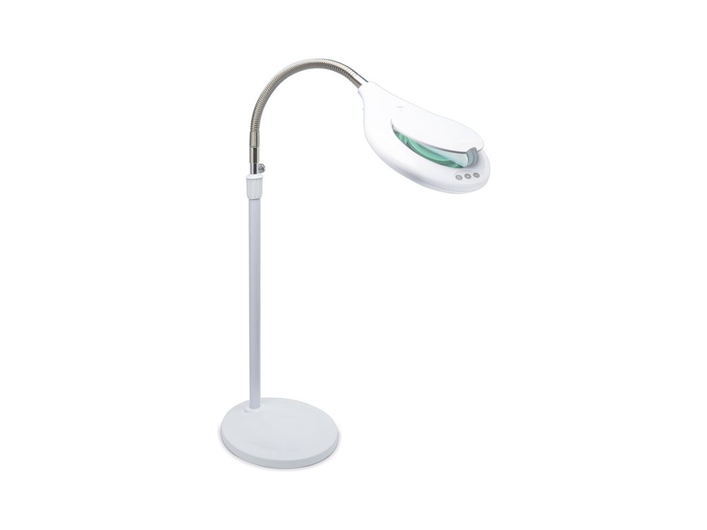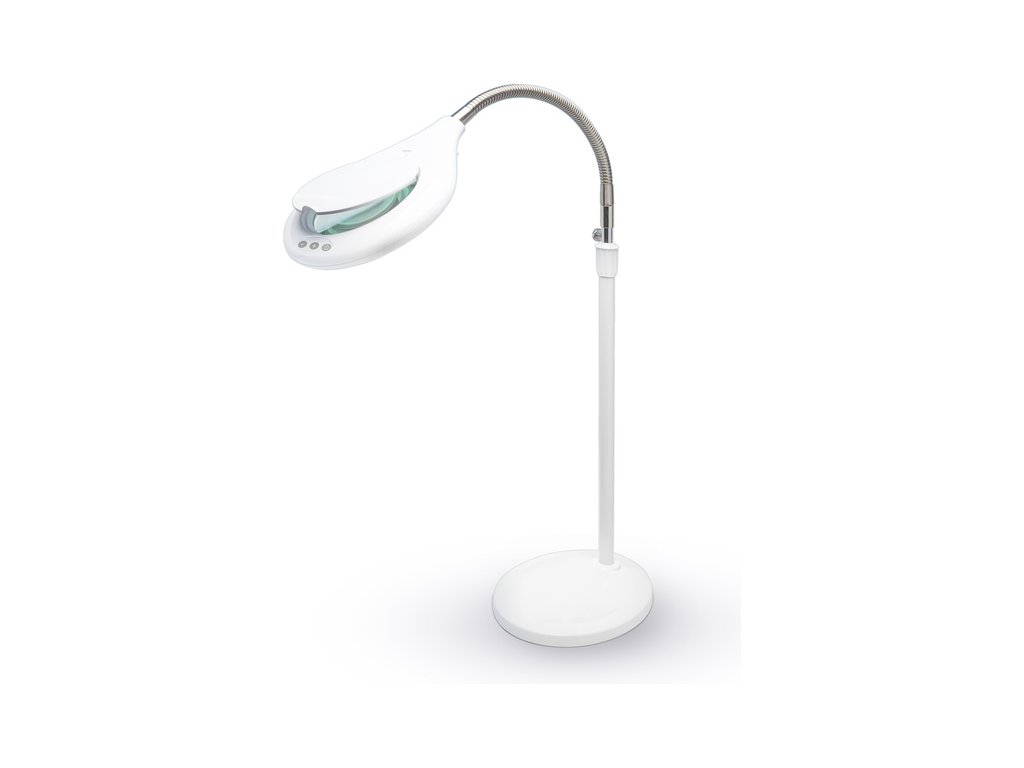 Energeticky úsporná Lightcraft stolní LED lampa s lupou a podstavcem s denním světlem, kvalitní zvětšovací čočkou, ideální pro čtení, psaní, studium a koníčky. Obsahuje stojan na podlahu se zátěží pro snadné nastavení a umístění a připojením do sítě 220V. Celkem 56 ks SMD LED produkujících 6000 – 7000k světla, čočka průměr 125mm, 1,75x zvětšení, pracovní výška 130cm.