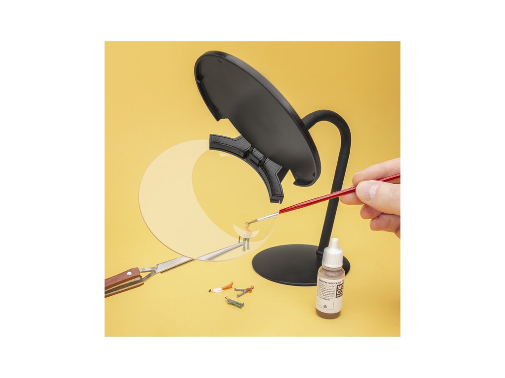 Modelcraft přenosná stolní lupa 1.75x/4.5x s flexibilním krkem na masívní stabilní základně. Odklopný kryt lupy o průměru čočky 110mm, zvětšení 3 dioptrie, vsazená lupa 14 dioptrií.