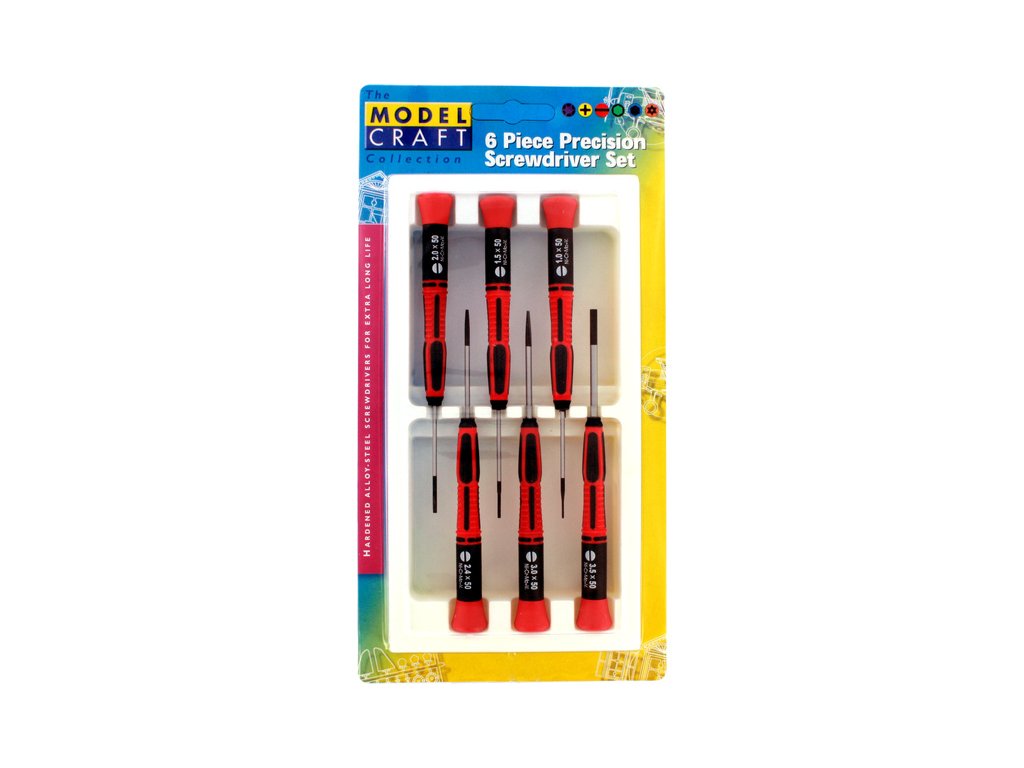 Modelcraft ploché šroubováky ( sada 6 ks ) z nerezové oceli s černou povrchovou úpravou a pracovní částí z nikl chrom molybdenové oceli. Dříky mají stejný průměr jak rozměr šroubováku, délka dříku je 50 mm. Rozměry: 1.0, 1.5, 2.0, 2.4, 3.0, 3.5 mm.