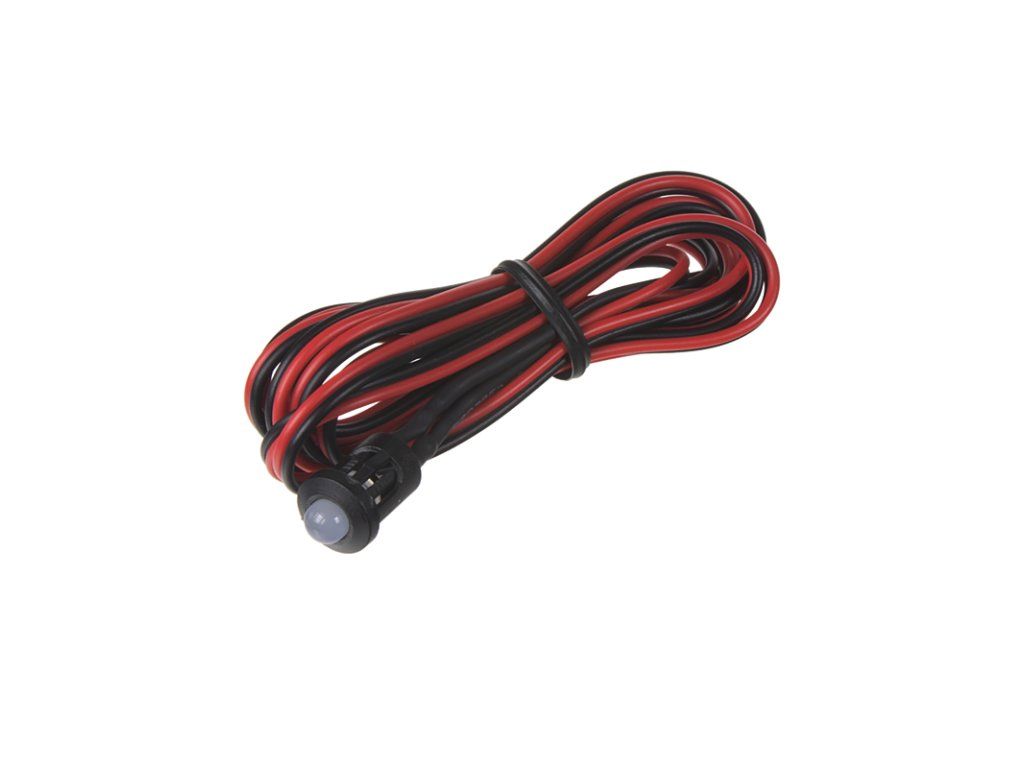 Samoblikací kontrolní LED dioda s objímkou a kabelem 80 cm modrá. Stačí připojit na 12 V a sama bliká, vhodná jako imitace autoalarmu.