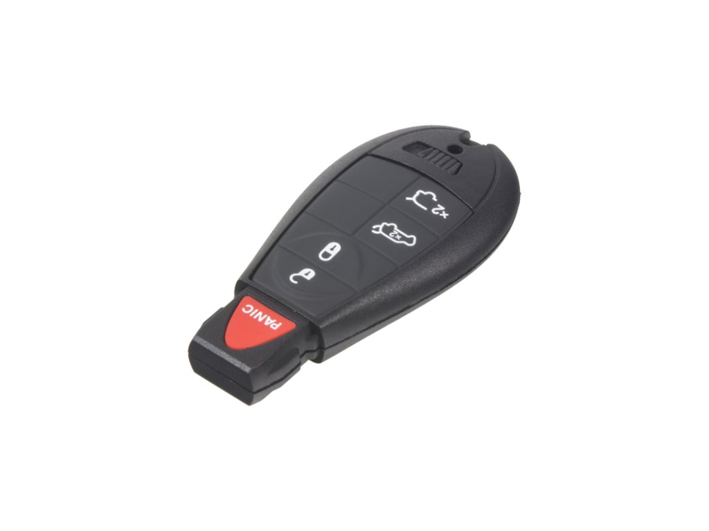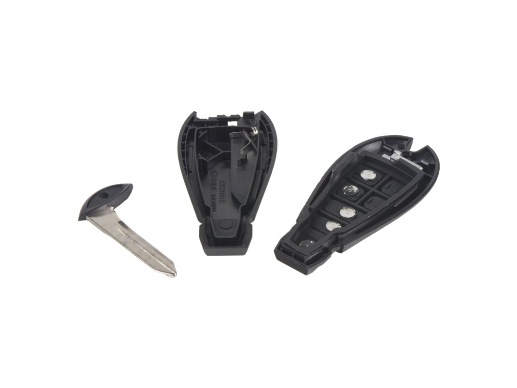 Náhradní obal klíče pro vozy Chrysler, Jeep s 4+1 -tlačítkovým ovladačem (bez elektroniky a čipu imobilizéru). Do klíče je nutno vložit z původního klíče elektroniku dálkového ovládání a čip imobilizéru (transpondér), planžetu klíče je třeba nechat vyfrézovat podle tvaru originálního klíče.