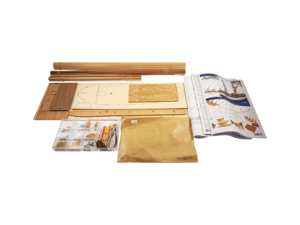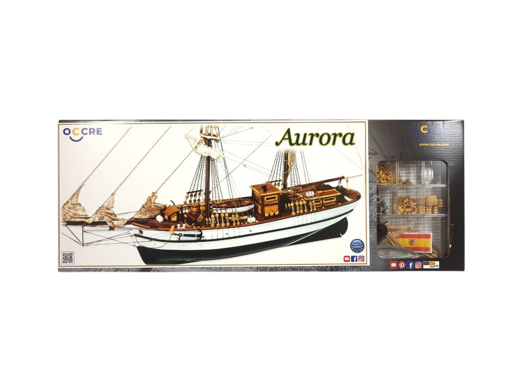 Stavebnice neplovoucího modelu lodi OCCRE Aurora, v měřítku 1:65. V balení jsou díly pro stavbu + plachty - laserem řezané díly, lišty, mosazné fotolepy, lanoví a další. Stavební výkresy a návod.