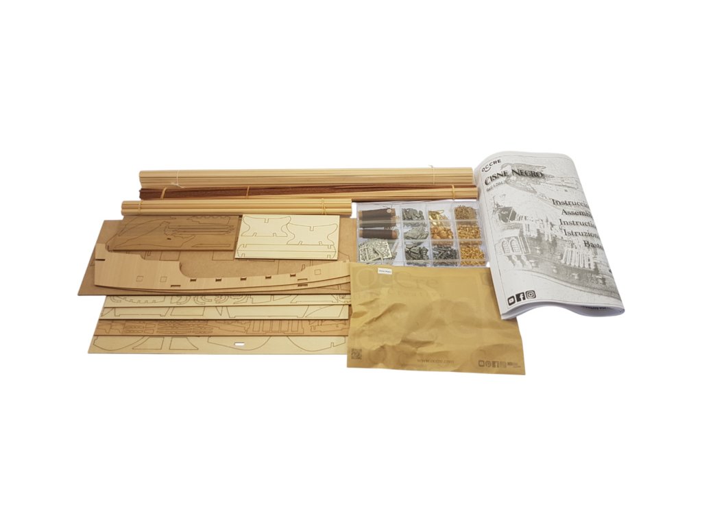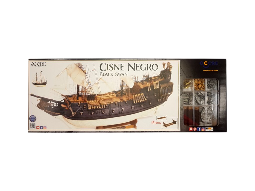 Stavebnice neplovoucího modelu lodi OCCRE Black Swan, v měřítku 1:75. V balení jsou díly pro stavbu + plachty - laserem řezané díly, lišty, mosazné fotolepy, lanoví a další. Stavební výkresy a návod.