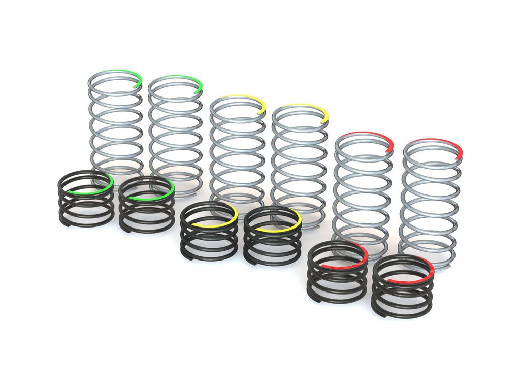 Sada tuningových pružin pro tlumič Pro-Line PowerStroke. Pozvedněte své tlumiče PRO636400 MAXX® PowerStroke na novou úroveň tím, že je vyladíte tak, aby odpovídaly vašim specifickým potřebám, díky pružinám s různou tuhostí. Smíchejte a spojte různé horní a spodní pružiny, abyste přizpůsobili své odpružení podmínkám. Tři různé horní a spodní tuhosti umožňují devět různých kombinací.