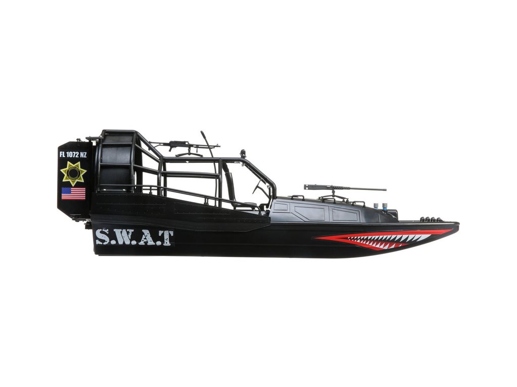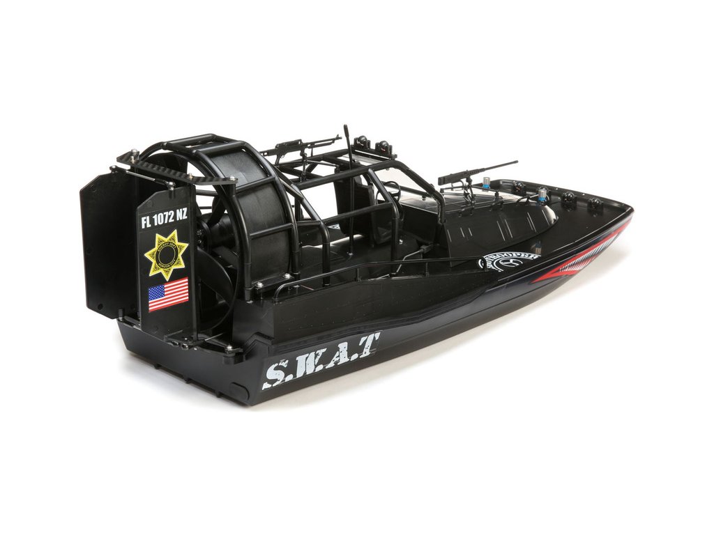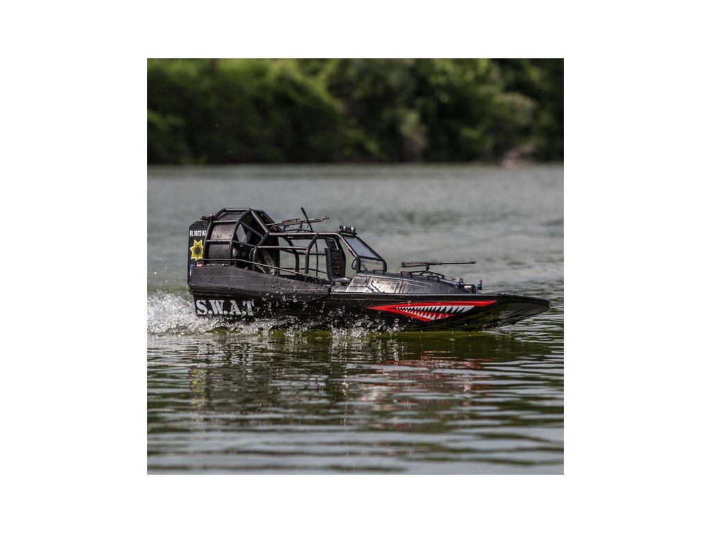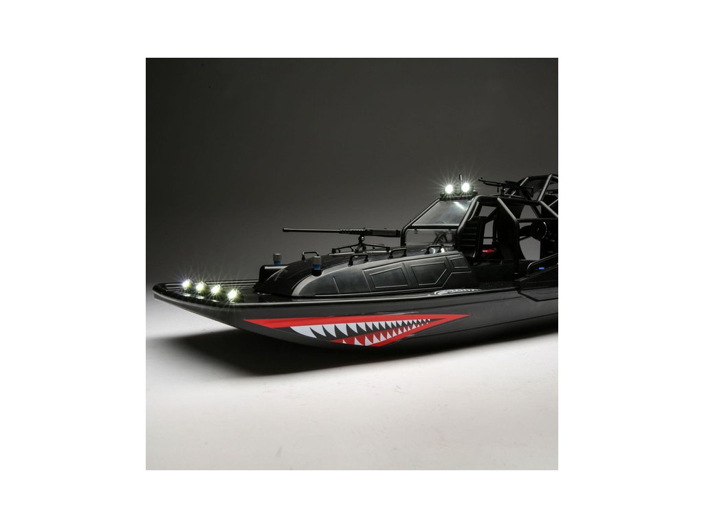 S lodí Pro-Boat Aerotrooper 25 Air Boat můžete jezdit prakticky kdekoli a to dokonce i po trávě! Díky výkonu střídavého motoru 2080kv 480 s 3-listou vrtulí který je umístěn v ochranné kleci, můžete prozkoumat velké vodní plochy s bažinami porostlé rostlinami, malé trávníkové pole a dokonce i sníh a led. Model je nabarven jako takticko/vojenský člun s odnímatelnými zbraněmi, tvarovaným zábradlím a klecí, které dodávají modelu na realismu. Navíc do kokpitu se sedadlem můžete umístit svoji akční figurku. Dvoudílné kompozitní kryt trupu zabrání průniku vody a udržuje celou elektroniku v bezpečí. LED světla jsou zárukou že zábava se nezastaví, ani když slunce zajde za obzor. Prozkoumejte nové terény s jedinečným plavidlem.