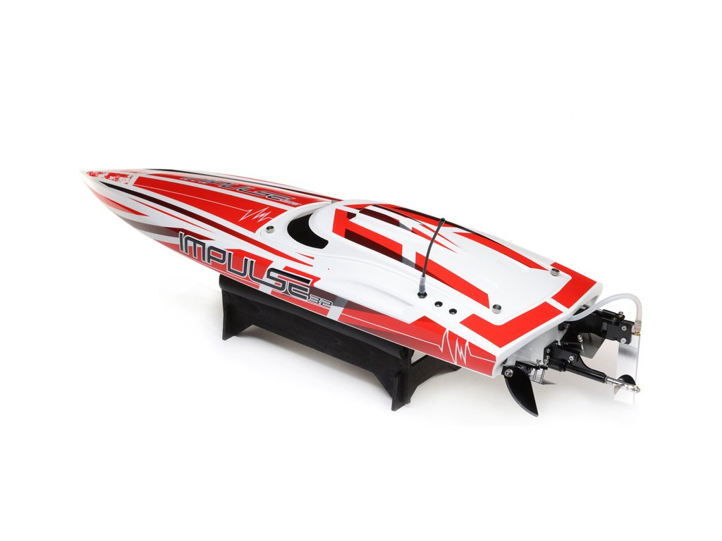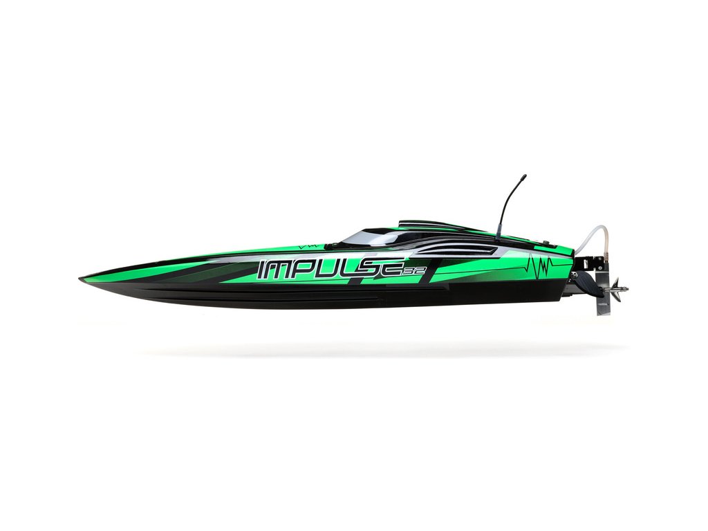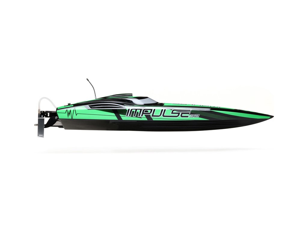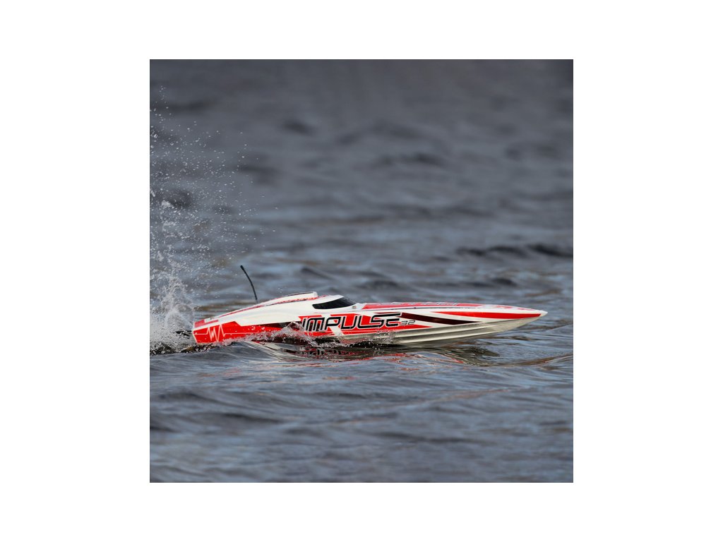 Rychlostní člun Impulse 32 s trupem typu Deep-V, představuje maximální výkon a kvalitu. Kombinuje soutěžní laminátový trup s výkonnou pohonnou jednotkou. Nebudete se moci nabažit extrémní rychlosti až 88km/hod. Vysoce výkonný vodou chlazený motor Spektrum™ 1900 KV spolu s vodou chlazeným regulátorem Smart Spektrum Firma™ 160A je schopen dát výkon až 3HP a dosáhne rychlost až 88km/hod! Díky Deep-V závodně koncipovanému laminátovému trupu je perfektně přilepen k vodě. Nastavitelné trimovací kormidla stabilizují loď při neuvěřitelně vysokých rychlostech. A to všechno při zachování přesného ovládání i za těch nejtvrdších podmínek na vodě.