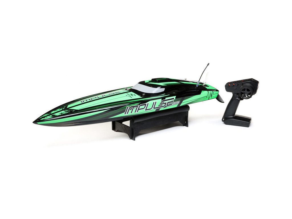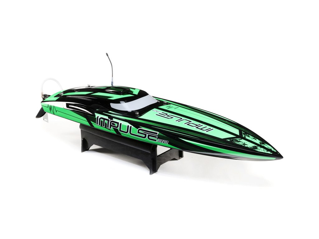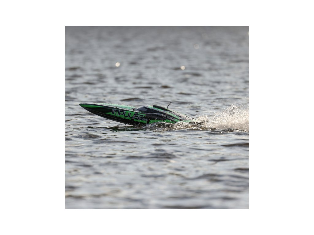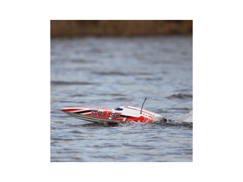 Rychlostní člun Impulse 32 s trupem typu Deep-V, představuje maximální výkon a kvalitu. Kombinuje soutěžní laminátový trup s výkonnou pohonnou jednotkou. Nebudete se moci nabažit extrémní rychlosti až 88km/hod. Vysoce výkonný vodou chlazený motor Spektrum™ 1900 KV spolu s vodou chlazeným regulátorem Smart Spektrum Firma™ 160A je schopen dát výkon až 3HP a dosáhne rychlost až 88km/hod! Díky Deep-V závodně koncipovanému laminátovému trupu je perfektně přilepen k vodě. Nastavitelné trimovací kormidla stabilizují loď při neuvěřitelně vysokých rychlostech. A to všechno při zachování přesného ovládání i za těch nejtvrdších podmínek na vodě.