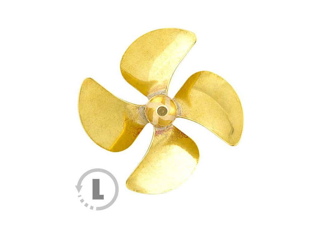 Raboesch lodní šroub tř.170 4-listý, průměr 25mm, směr otáčení levý, montáž na hřídel se závitem M3, materiál mosaz pájená stříbrem.