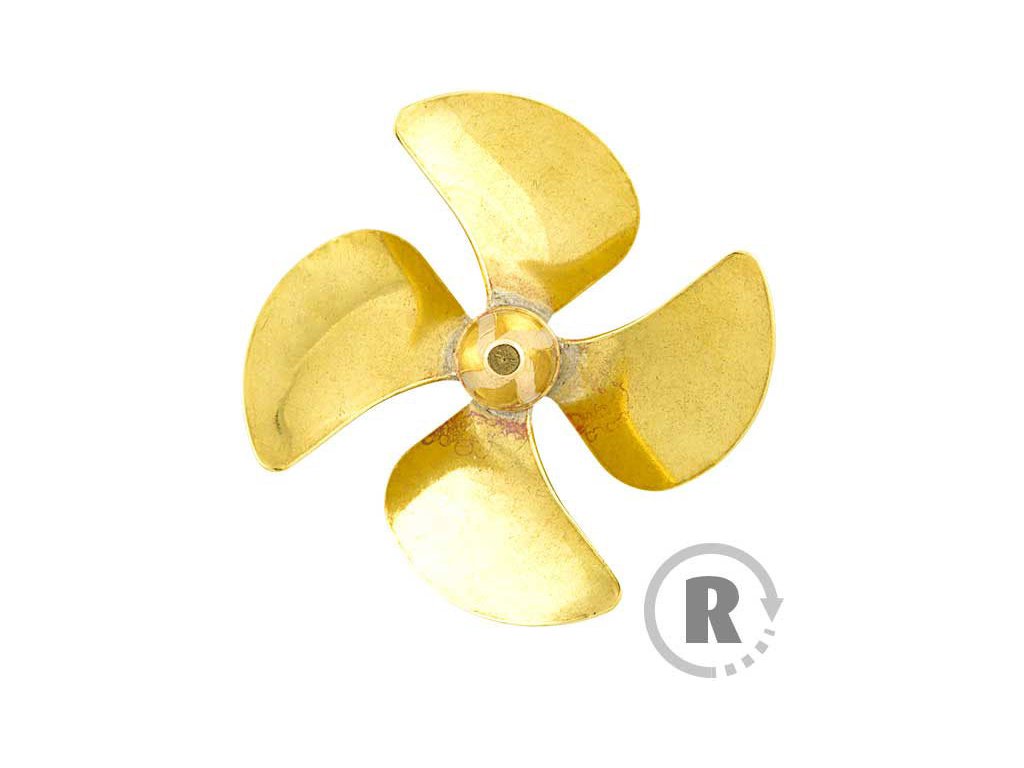 Raboesch lodní šroub tř.170 4-listý, průměr 30mm, směr otáčení pravý, montáž na hřídel se závitem M4, materiál mosaz pájená stříbrem.