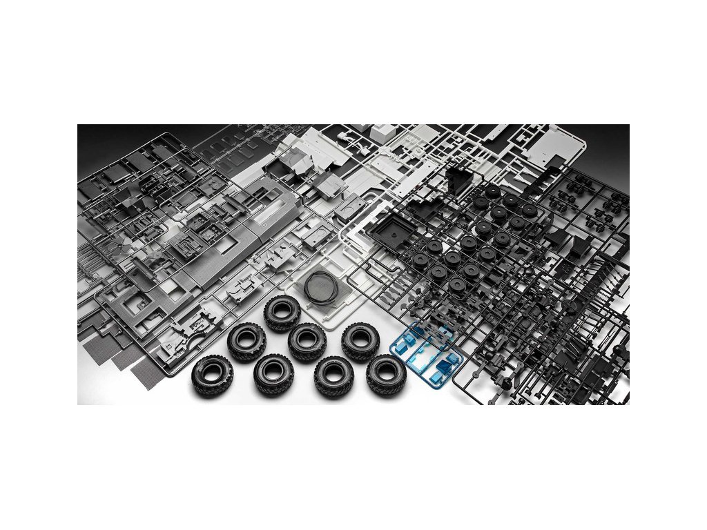 Revell plastikový model auta GFLF Simba 8x8 v měřítku 1:24 ke slepení. Stavebnice obsahuje 364 dílků, délka 47,6 cm, obtížnost 5.