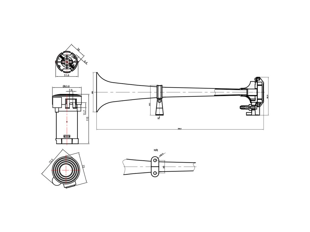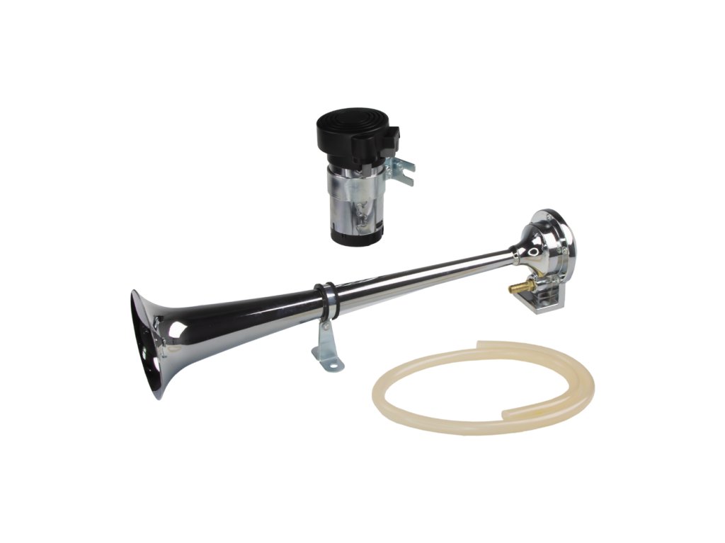 Fanfára poháněná vzduchovým kompresorem dodávaným v sadě. Trubka je vyrobena z velice odolné zinkové slitiny a povrch je pochromován. Je vhodná pro pohledovou montáž na karoserii vozu nebo do náročnějších klimatických podmínek. V sadě je dodávána také hadice a drobný montážní materiál.