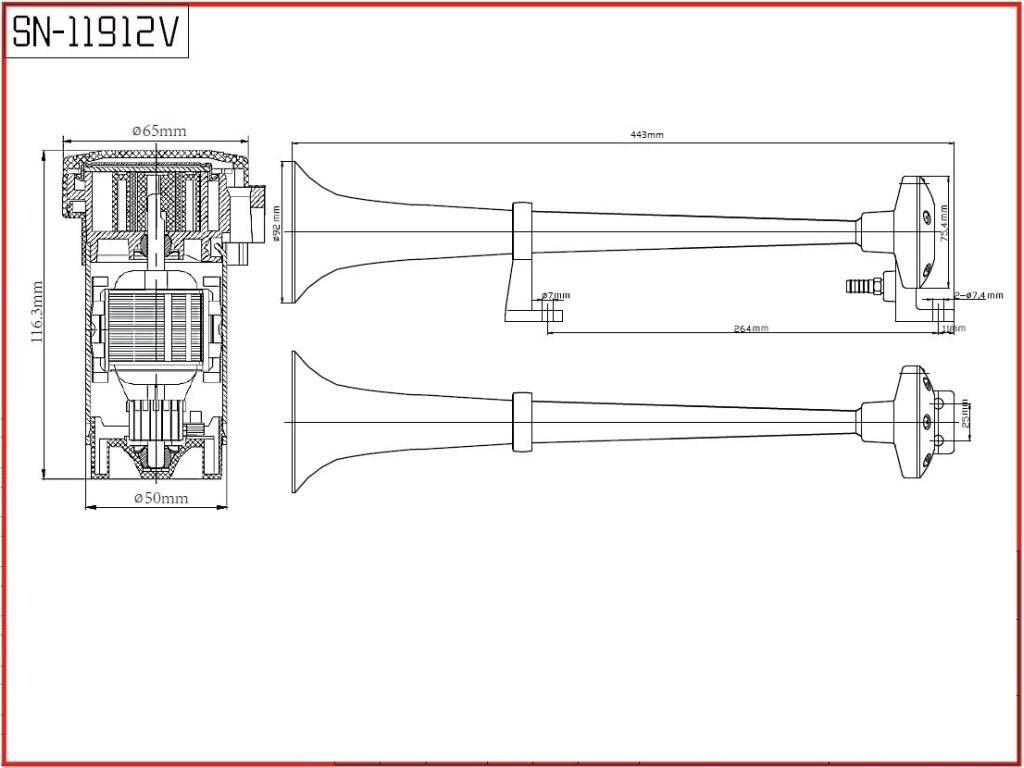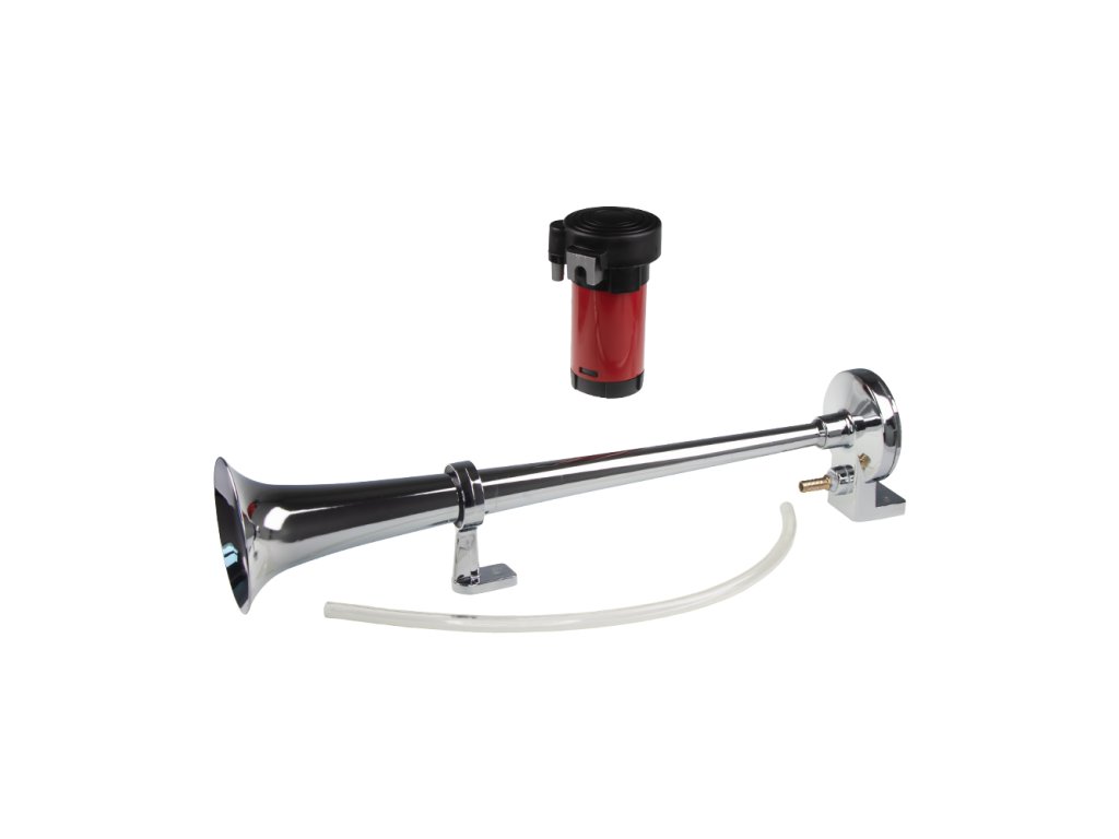 Fanfára poháněná vzduchovým kompresorem dodávaným v sadě.Trubka je vyrobena z velice odolné zinkové slitiny a povrch je pochromován. Je vhodná pro pohledovou montáž na karoserii vozu nebo do náročnějších klimatických podmínek.