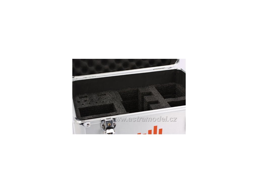 Kufr pro vysílač a příslušenství, kromě vysílače lze do kufru uložit nabíječ, baterie, přijímač apod. Vnitřní rozměry šířka 343mm, hloubka 219mm, výška 275 mm. Vhodný pro všechny vysílače Spektrum včetně DX9 a DX18.