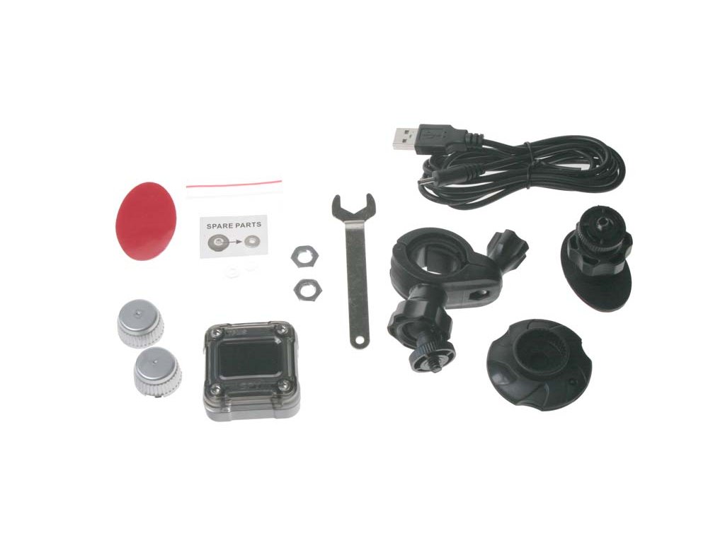 Systém pro kontrolu tlaku a teploty v pneumatikách pro motocykly. Displej se umisťuje na řidítka motocyklu nebo na nalepovací držák. Čidla jsou určena pro vnější montáž, proto montáž zvládnete svépomocí (pouze se vymění čepička ventilku).