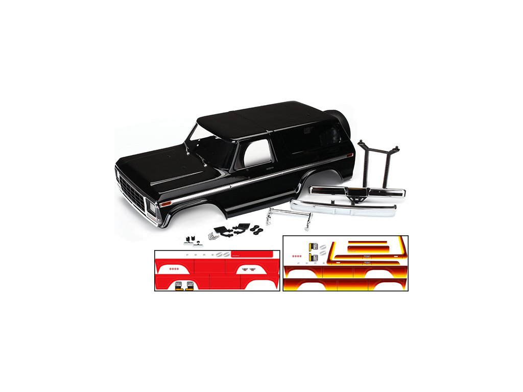 Náhradní díl pro RC model auta Traxxas TRX-4 Ford Bronco: Karosérie černá. Obsahuje dekorační samolepky a doplňky.