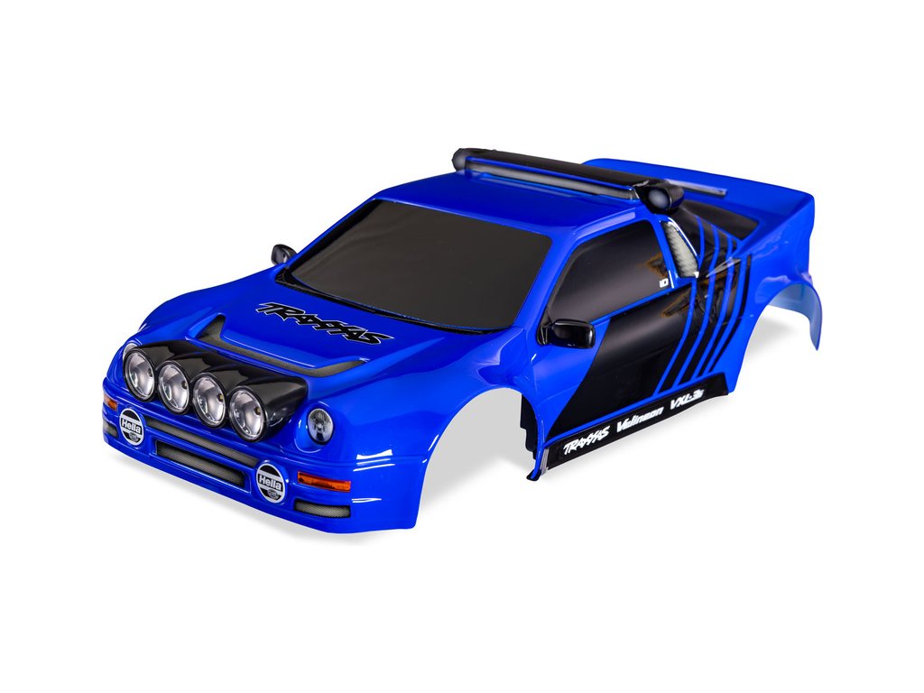 Traxxas karosérie Ford RS200 modrá. Hotová, nabarvená a sestavená karoserie s aplikovanými polepy. Včetně bezsponkového držáku, parabol světel, bočních zrcátek, prahů a nasávacích otvorů.