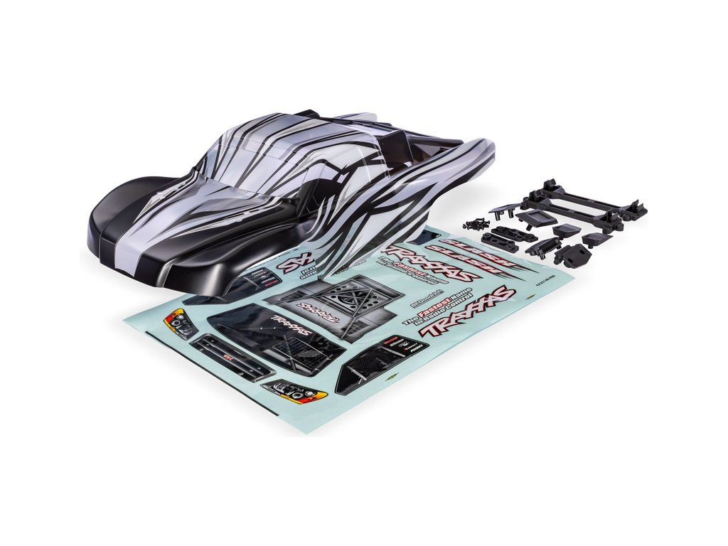 Traxxas karosérie Slash ProGraphix (bezsponková). S předtištěnou grafikou pro perfektní výsledek, vyžaduje barvení. Včetně západek bezsponkového uchycení karoserie a archu samolepek. Pro starší šasi Slash je vyžadován díl #6940 (Slash 2WD), respektive díly #6976 a #10125 (Slash 4x4).