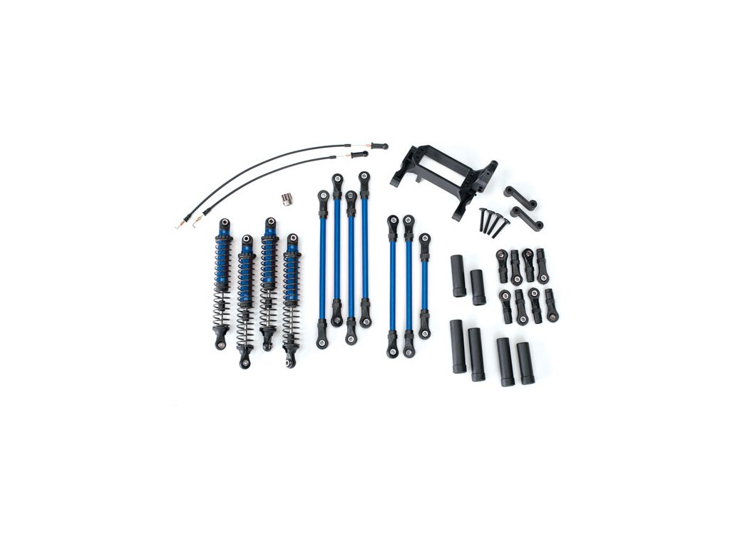 Tuningová konverzní sada v modré barvě pro podvozek Traxxas TRX-4 umožňující vyšší zdvih kol. Sada obsahuje veškeré potřební díly potřebné k přestavbě. Sada obsahuje: