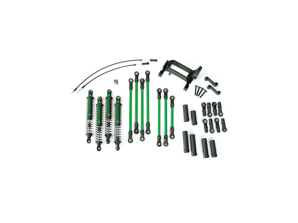 Tuningová konverzní sada v zelené barvě pro podvozek Traxxas TRX-4 umožňující vyšší zdvih kol. Sada obsahuje veškeré potřební díly potřebné k přestavbě.