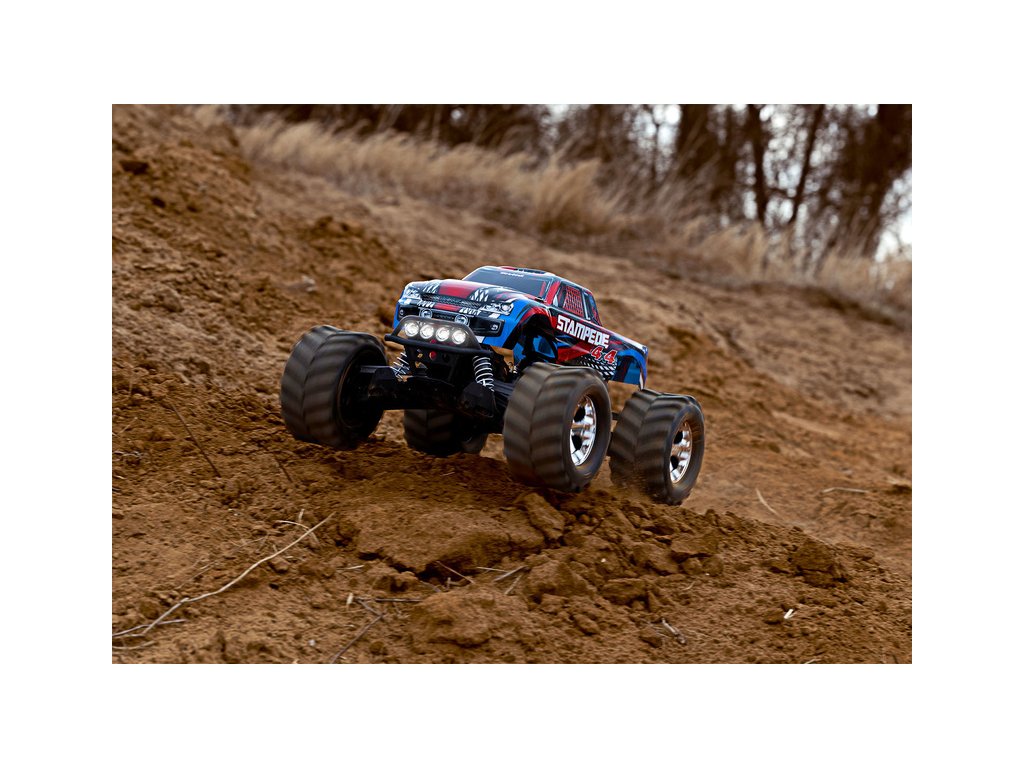 Kompletní sada LED osvětlení 4WD Stampede, pro dech beroucí jízdu ve dne i v noci. Díky tomuto osvětlení se z vašeho model stane opravdový skvost. Vysoce svítivé diody jsou nejen efektní, ale poskytují silný proud světla. Osvětlení zároveň dodává lepší přehled o poloze modelu. Montáž sady je snadná, stačí přešroubovat celé díly, není nutné nic upravovat vrtat, či pájet. Osvětlení je napájeno z přijímače přes Y kabel.