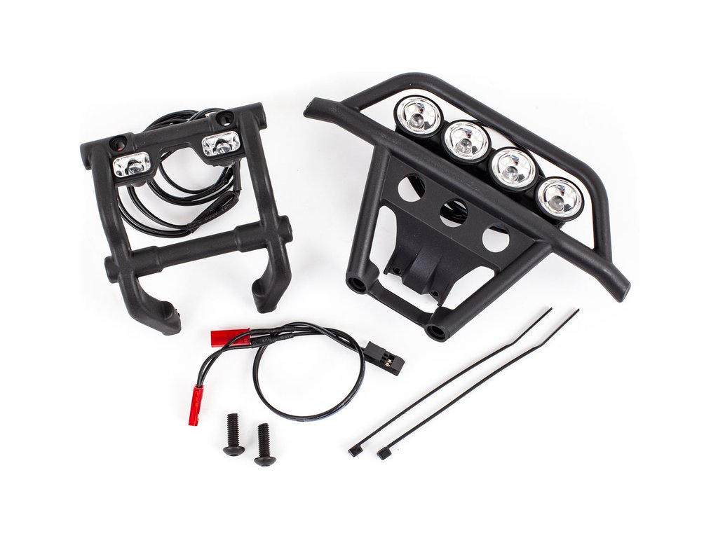 Balení obsahuje přední a zadní nárazník s LED osvětlením, Y-kabel pro zapojení do přijímače, montážní příslušenství. Návod CZ a manuál EN, DE, FR, SP.