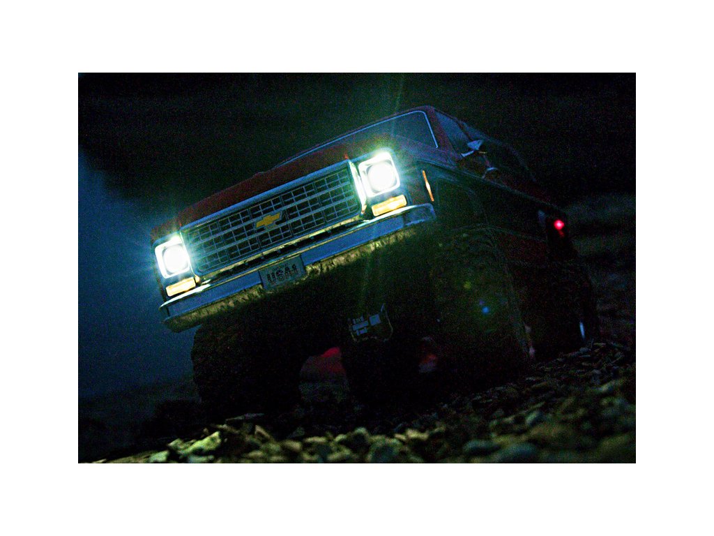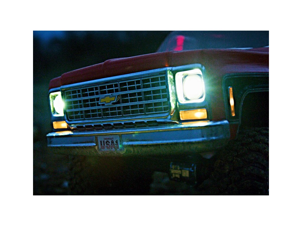 Osvětlení pro TRX-4 Chevrolet K5 Blazer, dodá modelu nevšední vzhled, jako nikdy předtím. Originální díly přesně padnou do karoserie a Vy tak získáte autentický vzhled legendárního Chevroletu. Nová sada LED osvětlení využívá realistické měřítko na všech komponentech, tj. přední světlomety, zadní světlomety a boční směrovky.