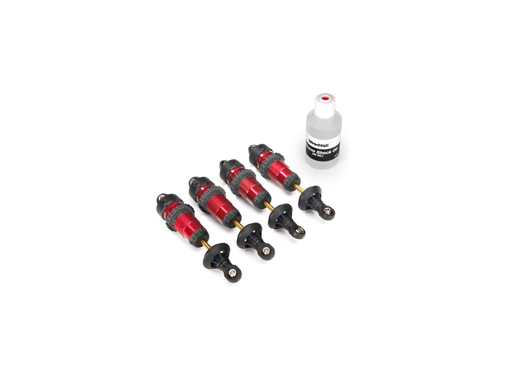 Traxxas tlumič GTR hliníkový červený (2ks pření, 2ks zadní) se silikonovým olejem. Konstrukce GTR má hliníkové tělo se závitem a kroužkem pro přesné nastavení předpětí. Chromované hřídele mají vysokou životnost a hladký chod. Uvnitř tlumiče jsou tlumící pryžové tělesa kompenzující objem, aby se zajistilo dokonalé tlumení v celém rozsahu. Tlumiče GTR jsou doporučeny pro nitro auta Traxxas, pro XO-1, E-Revo® VXL.