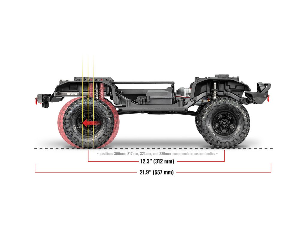 Šasi TRX-4 používá portálové nápravy s nápravovou převodovkou. Nápravová převodovka zvyšuje světlou výšku, snižuje namáhání převodovky, kardanových hřídelí a dále se snižuje torzní síla - model se méně naklápí.