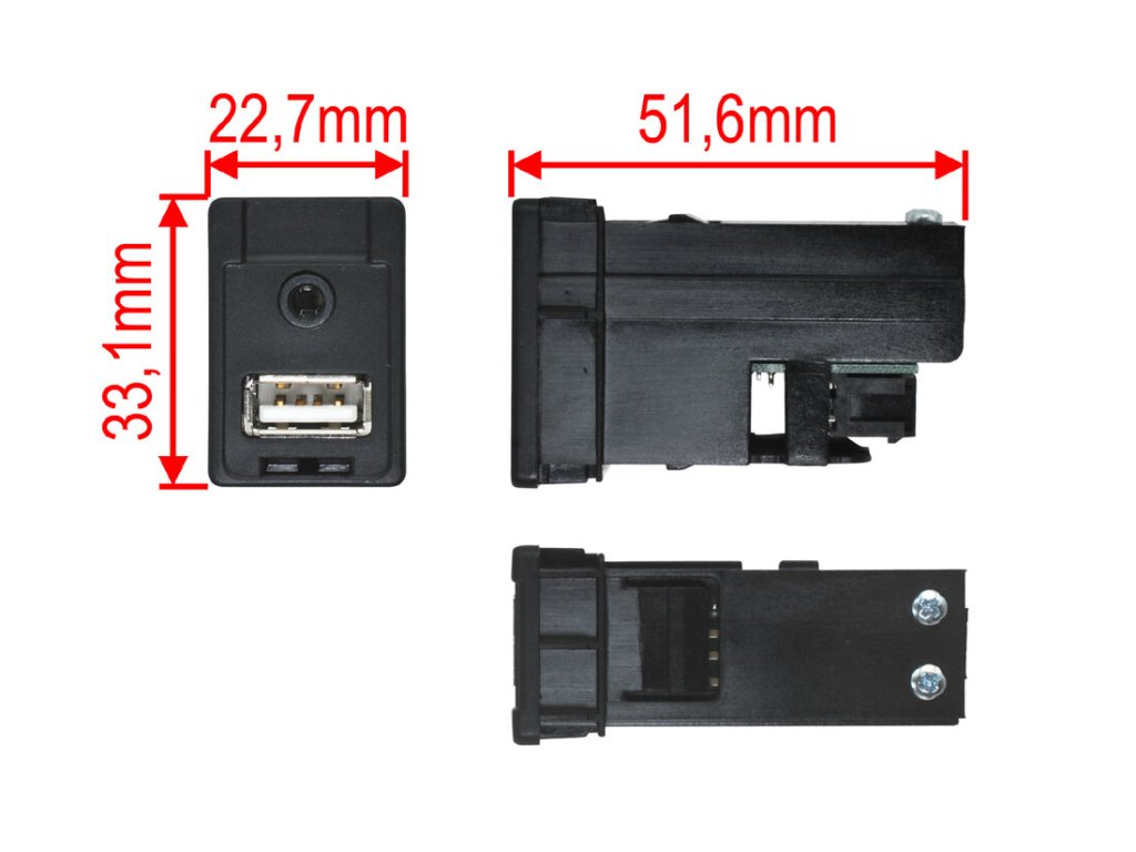 - konektory do instalovaného autorádia nebo navigace: USB / JACK 3,5mm 4-pólový (audio+video)